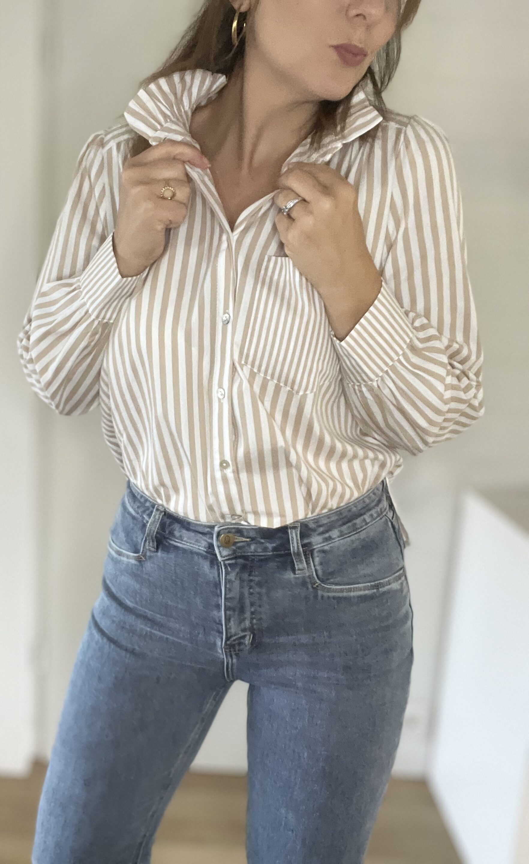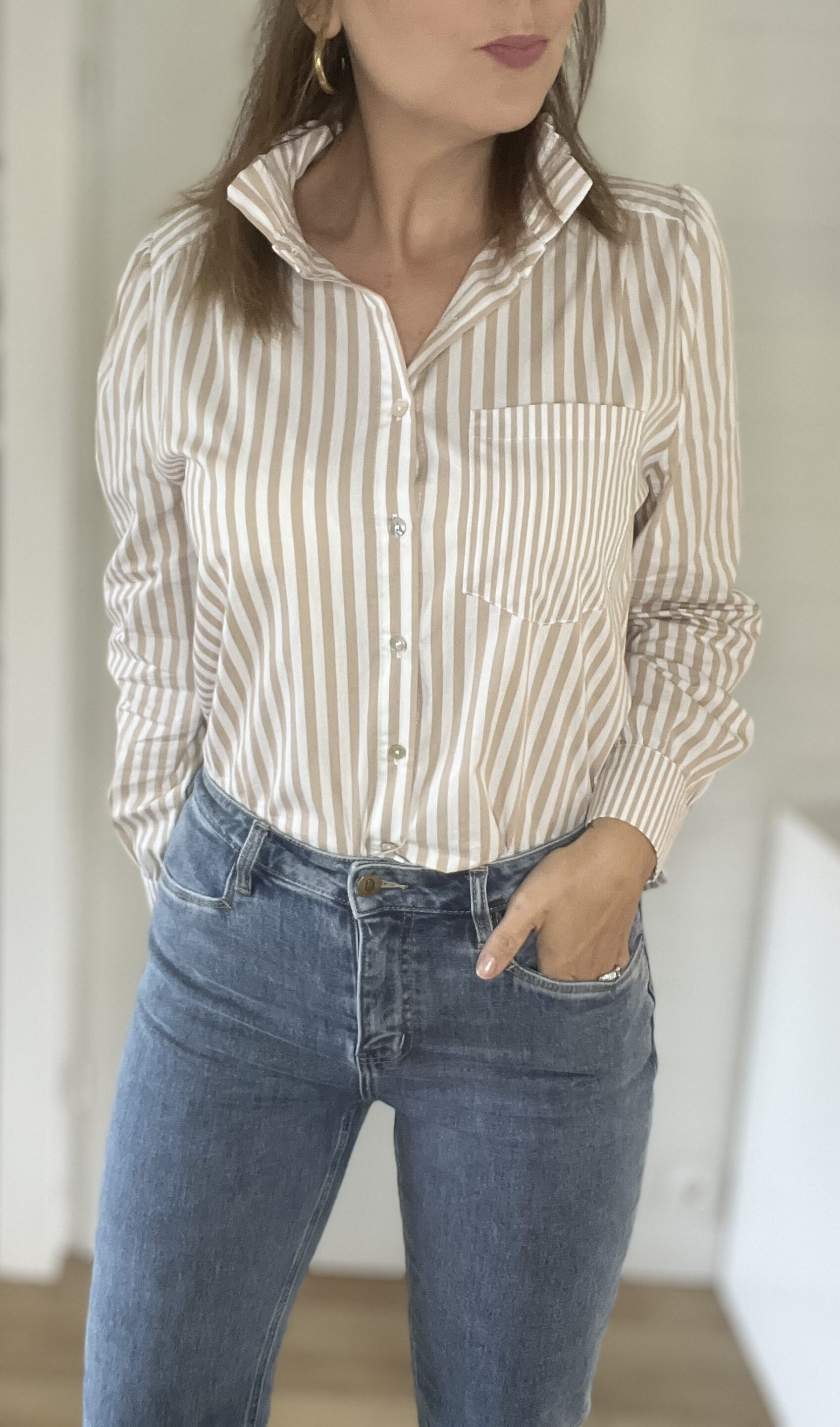 Chemisier Cléa Beige/Blanc