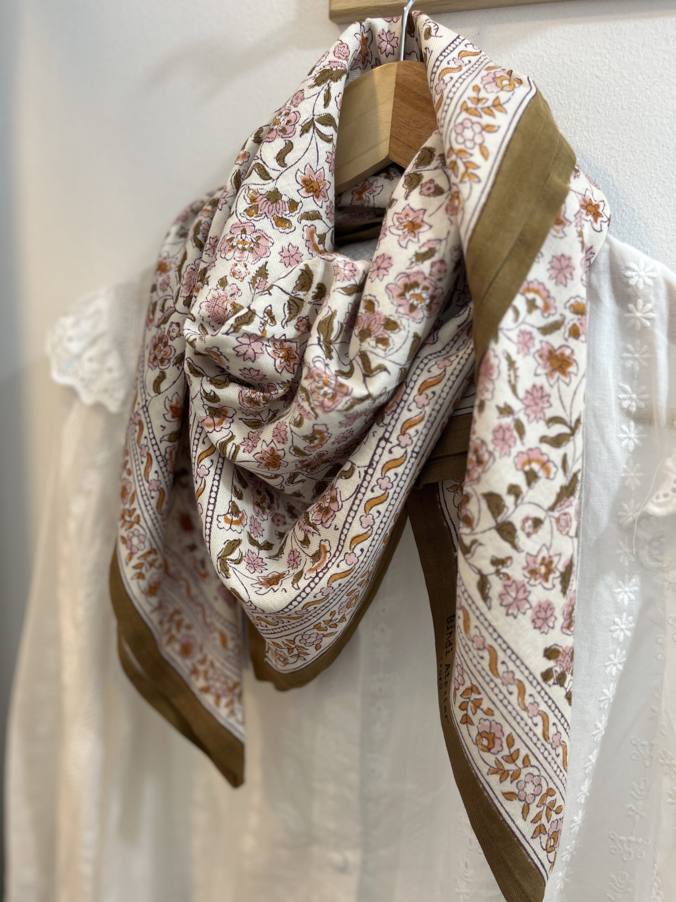 - Foulard imprimé à la main selon la technique d’impression au bloc de bois.
