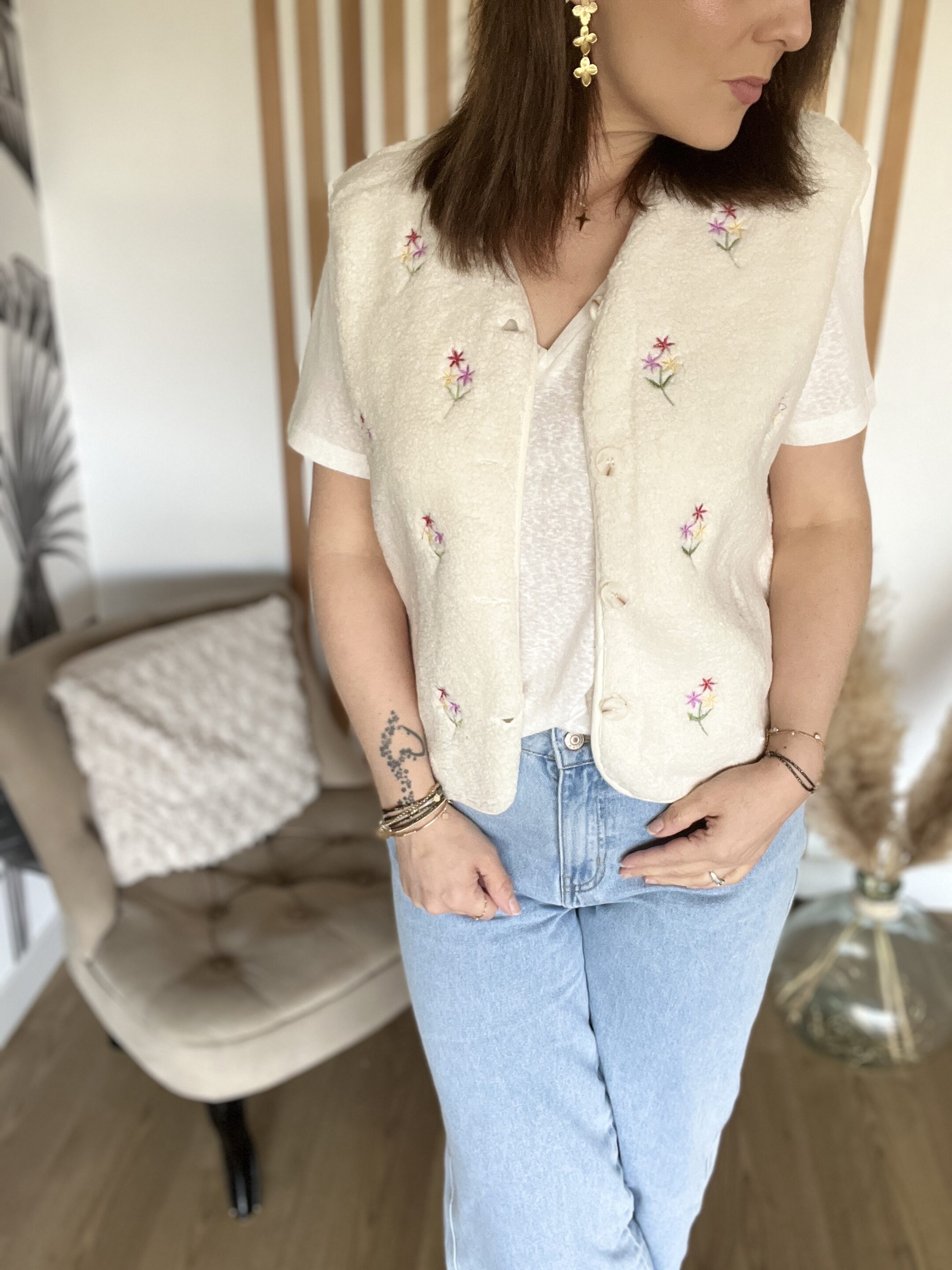 Gilet sans manches écru